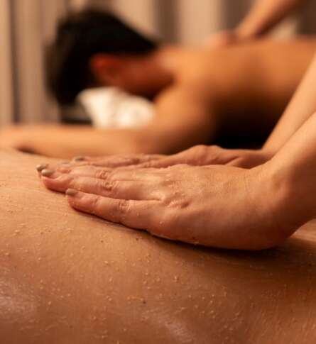 Un soin gommant, hydratant et régénérant aux sels de l’Himalaya et aux huiles essentielles bio sur le corps, 20mn. Pour une peau douce et satinée, affine le grain de peau, unifie et perdure le bronzage.